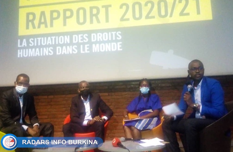 amnestyAmnesty international a procédé ce mercredi 7 avril 2021 au lancement de son rapport mondial annuel 2020 au cours d’une conférence de presse à l'institut français de Ouagadougou. En ce qui concerne la situation des droits de l’homme au Burkina Faso, l’organisation internationale estime que les groupes armés se sont livrés à une violation des droits humains à travers des homicides et des enlèvements. Les forces de sécurité (FDS Ndlr) auraient, quant à elles, procédé à des exécutions extrajudiciaires et commis des actes de torture. Cette rencontre était animée par Yves Boukari Traoré, directeur d'Amnesty International, Fatimata Ouédraogo, coordinatrice jeunes et genre, et Moussa Ouédraogo, coordonnateur éducation aux droits humains.