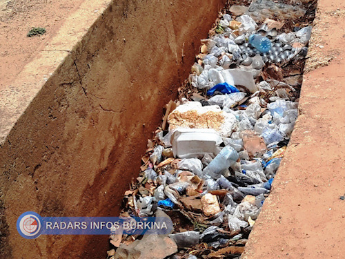 Le plus grand canal de Wemtenga a, lui aussi, des allures de décharge publique à ciel ouvert. Difficile de distinguer les déchets qui prédominent malgré sa grande taille. Le canal est visiblement rempli d’ordures ménagères qui y sont déversées. A Ouagarinter, difficile de déterminer les limites du caniveau, car il est déjà rempli et les déchets plastiques affleurent.